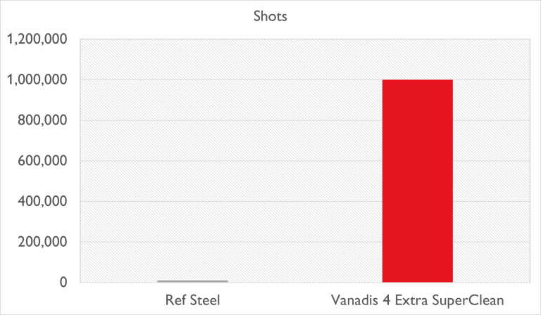 | Steel | Reference tool steel Competitive steel of various grades | Vanadis 4 SuperClean |
