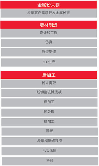 从金属粉末的生产开始,到工程设计、仿真、原型制造、加工和全范围的后处理,我们为您提供增材制造全产业链的支持。 这种端对端的解决方案,减少了浪费并降低了供应链中的风险。
